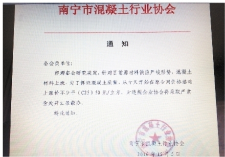 南寧市混凝土行業(yè)協(xié)會的漲價(jià)通知。