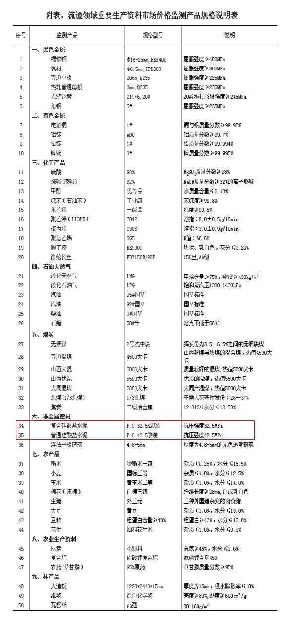流通領(lǐng)域重要生產(chǎn)資料市場(chǎng)價(jià)格監(jiān)測(cè)內(nèi)容包括9大類50種產(chǎn)品的價(jià)格。類別與產(chǎn)品規(guī)格說(shuō)明詳見附表。