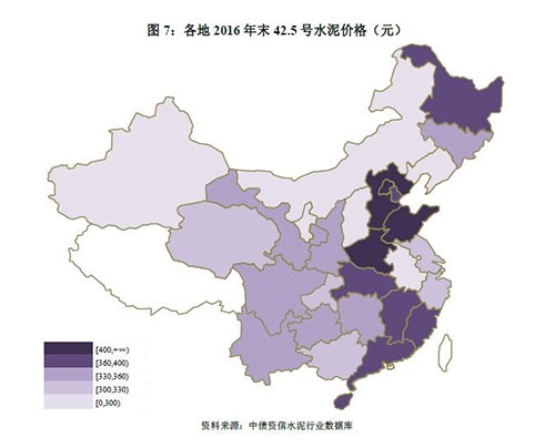 華北地區(qū)由于基數較低,得益于京津冀地區(qū)需求回暖、金隅冀東整合帶來競爭秩序改善等因素,全年42.5號水泥價格漲幅117元,居全國首位,價格水平亦從2015年末全國末尾攀升至第二位;東北地區(qū)往年在黑龍江、吉林良好競爭秩序支撐下價格處全國高位,但2016年在需求低迷背景下價格漲幅較小,截至2016年末價格已處倒數第二位。