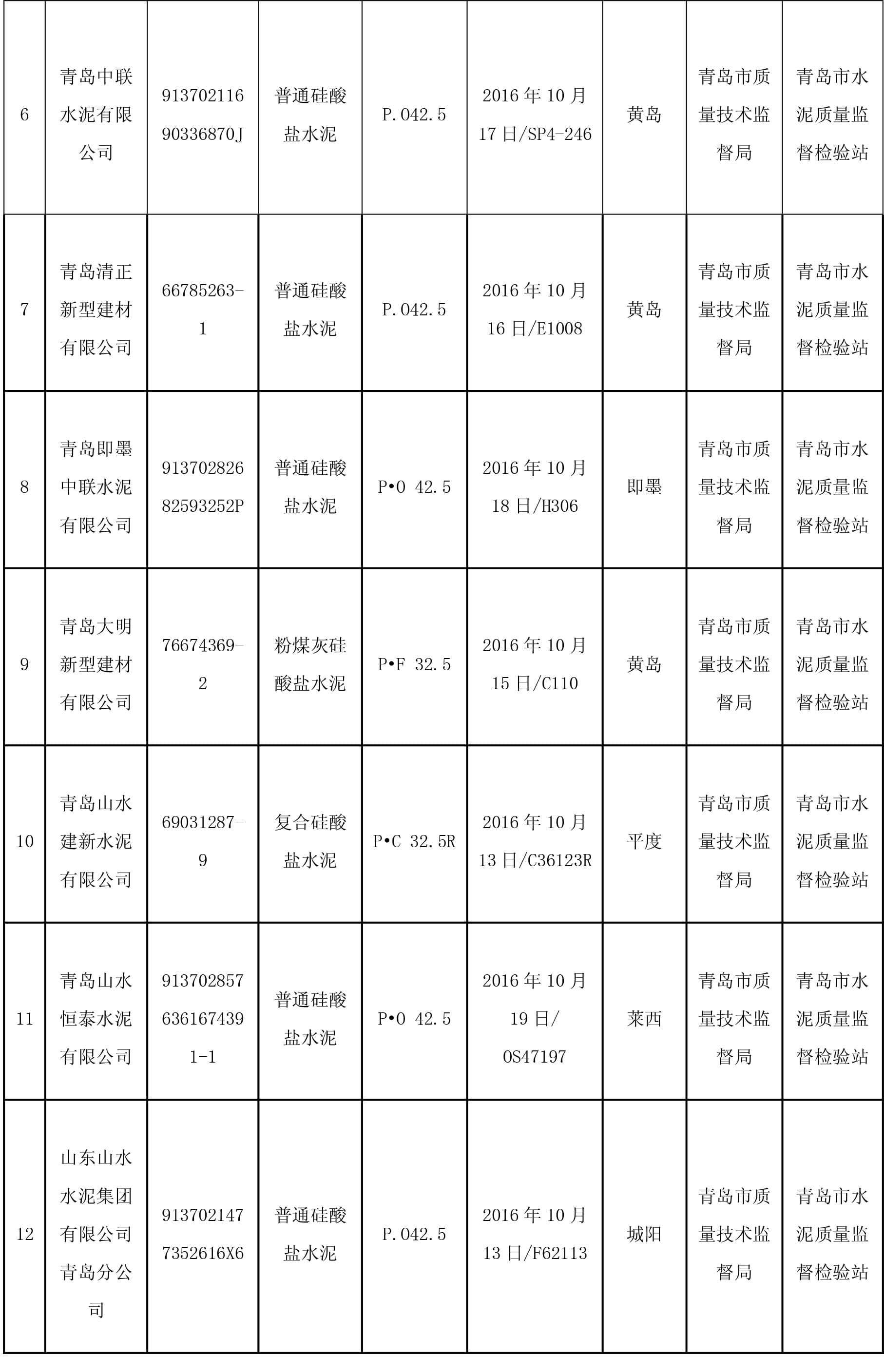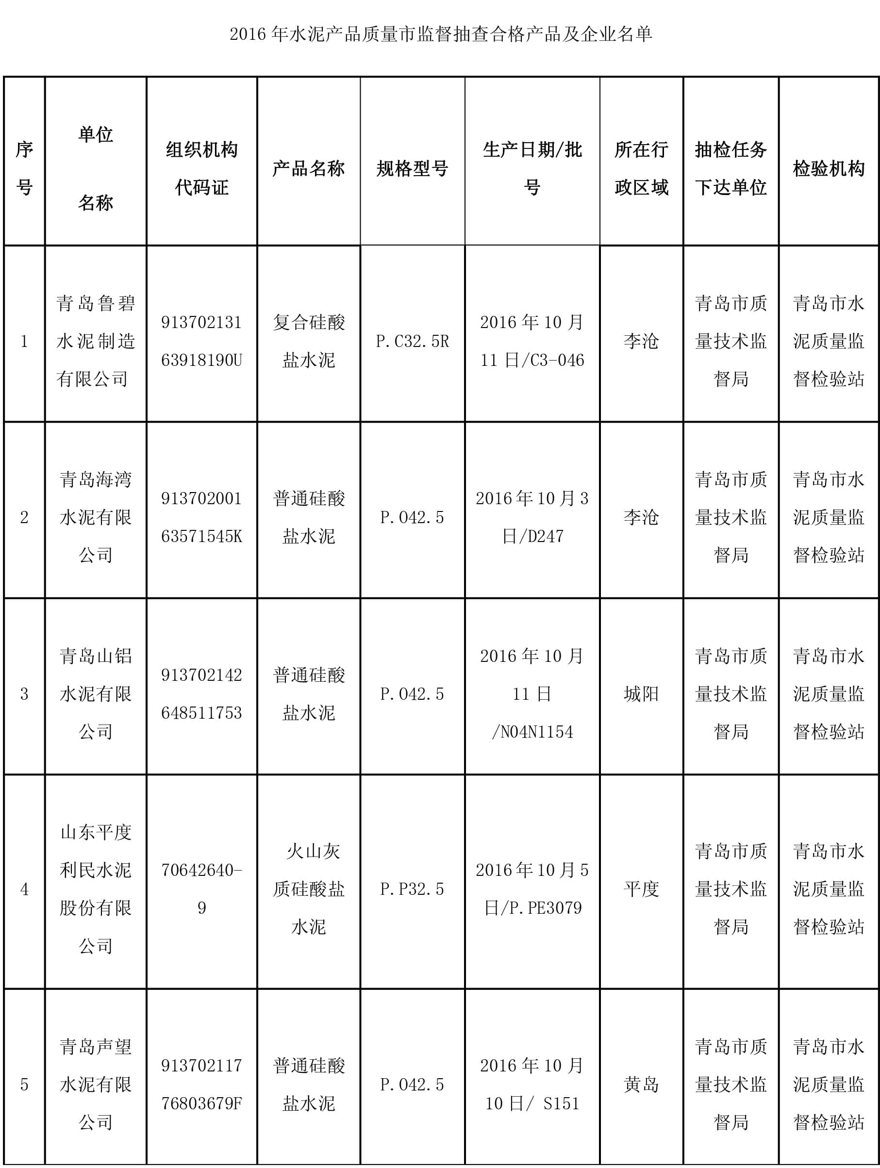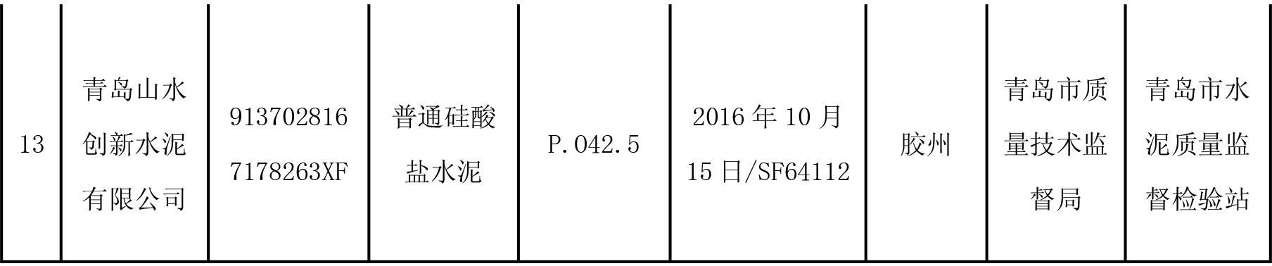 2月8日,青島市質(zhì)量技術(shù)監(jiān)督局官網(wǎng)公布2016年水泥產(chǎn)品質(zhì)量市監(jiān)督抽查結(jié)果,本次抽查了 13家企業(yè)生產(chǎn)的13批次產(chǎn)品,監(jiān)督抽查結(jié)果全部合格。