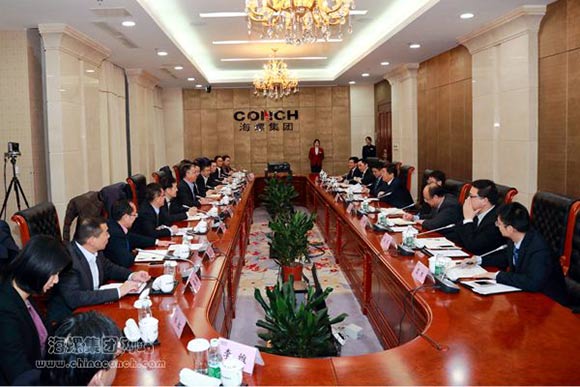 高登榜董事長對周龍山主席的來訪表示歡迎。他說,2016年,本著“合作共贏、優(yōu)勢互補、互利互惠”的原則,華潤水泥與海螺集團簽署了戰(zhàn)略合作協(xié)議,雙方開展了很好的交流與合作,取得了不錯成效。2017年,公司圍繞“一強三冠”發(fā)展目標,全力推進公司的改革發(fā)展,希望在前期的合作基礎上,雙方進一步強化溝通交流機制,探索更深層次的合作,把雙方的合作推上新的臺階。