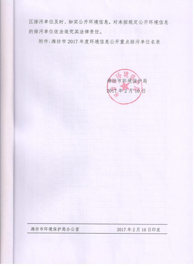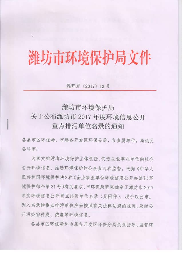 近日,濰坊市環(huán)保局對(duì)外正式公布《2017 年濰坊市環(huán)境信息公開重點(diǎn)排污單位名單》。據(jù)悉,該名單的公布是濰坊市環(huán)保局為積極落實(shí)排污者環(huán)境保護(hù)主體責(zé)任,促進(jìn)企業(yè)事業(yè)單位向社會(huì)公開環(huán)境信息,推動(dòng)環(huán)境保護(hù)的公眾參與和監(jiān)督,依據(jù)《中華人民共和國(guó)環(huán)境保護(hù)法》和《企業(yè)事業(yè)單位環(huán)境信息公開辦法》的有關(guān)要求面向全社會(huì)公布的。濰坊各縣市區(qū)共計(jì)189家企業(yè)事業(yè)單位被列入名單。