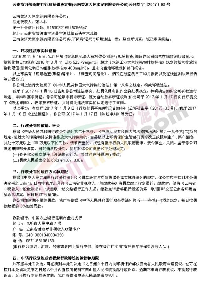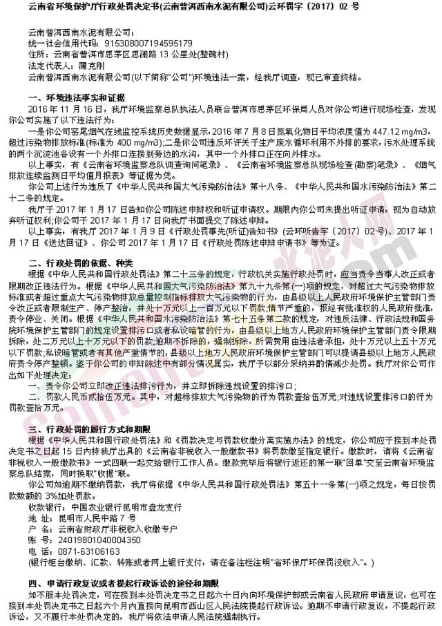 今天(2月15日)一天,云南省就下發(fā)4項行政處罰決定,被罰企業(yè)涉及3家水泥公司,分別為: