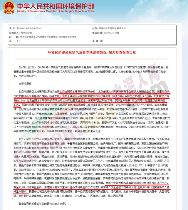 今日(24日)環(huán)境保護(hù)部通報(bào)空氣質(zhì)量專項(xiàng)督查情況并稱會(huì)加大暗查夜查力度。