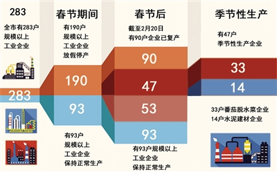 根據(jù)調(diào)度,預計3月15日巴彥淖爾市全市規(guī)模以上工業(yè)企業(yè)生產(chǎn)情況將基本步入正軌,正常生產(chǎn)企業(yè)可達195戶,如剔除47戶季節(jié)性生產(chǎn)企業(yè),開工率將達到85.5%,恢復至春節(jié)放假前生產(chǎn)水平。