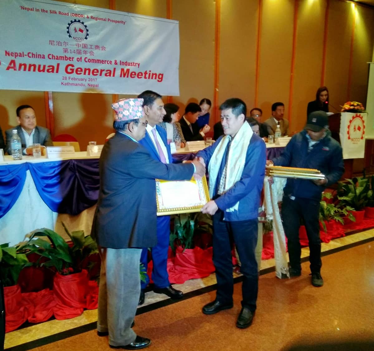 當天的年會,尼泊爾副總理兼財政部長馬哈拉、中國駐尼泊爾大使于紅、尼中工商會主席拉杰希.施雷斯塔及尼中工商會會員約150人出席會議。