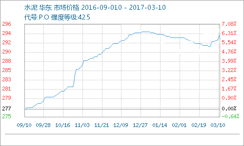 本周水泥價(jià)格小幅上漲趨勢(shì),周初價(jià)格為292.83元/噸,周末價(jià)格為294.17元/噸,跌幅為0.46%。