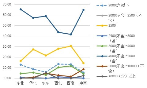 圖3:六大區(qū)域新型干法熟料生產線按規(guī)模分布情況(%)