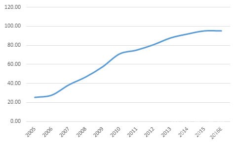 根據(jù)國家統(tǒng)計局數(shù)據(jù),2015年窯外分解窯熟料產量達12.7億噸,占熟料總產量的95.18%,預計2016年這一比重在95.2%左右,基本與2015年相當。雖然窯外分解窯工藝的熟料產量比重逐年提高,但是截止2016年仍有4.8%的熟料由非窯外分解窯生產。