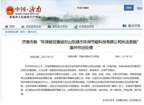濟(jì)南查處"環(huán)保部督查受阻":4人被傳喚 公司停業(yè)