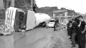 昨日(4月18日)下午3點鐘左右,巫山龍門大橋往該縣騾坪鎮(zhèn)方向約300米處發(fā)發(fā)生一起慘烈車禍,一輛側翻的水泥罐車將一輛寶馬轎車的車頭壓扁,寶馬車司機當場身亡,罐車司機受傷。