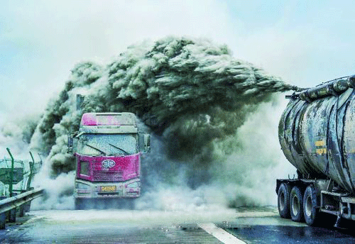 雖然已經(jīng)過去很久,但是說起拍照當(dāng)天的情景,姜豪仍然記憶猶新。那天他和同事接到高速路段上發(fā)生緊急事故的報(bào)警后,迅速趕到事故現(xiàn)場(chǎng)。現(xiàn)場(chǎng)起火的貨車??吭谟猜芳缟?,車廂里不斷有黃色濃霧冒出,還夾雜著黑煙和火苗。