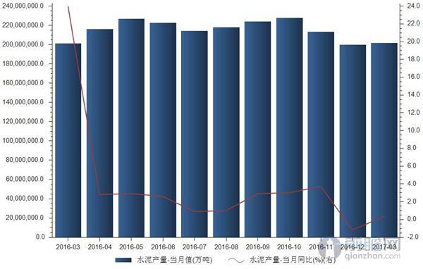相關(guān)數(shù)據(jù)顯示,2017年3月我國水泥產(chǎn)量達(dá)2億噸,同比增長0.3%,水泥市場需求逐步恢復(fù),單月水泥產(chǎn)量同比略有增長。