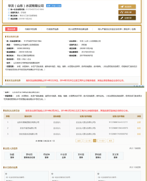 華沃(山東)水泥有限公司與華沃(棗莊)水泥有限公司無任何關(guān)聯(lián)關(guān)系。沃特蘭亭水泥有限公司已于 2017 年 6 月將持有的華沃(山東)水泥有限公司的股權(quán)全部對(duì)外轉(zhuǎn)讓,且于 2017 年 6 月 7 日完成華沃(山東)水泥有限公司股東及法定代表人的工商變更登記。自 2017 年 6 月起,沃特蘭亭水泥有限公司已經(jīng)不參與華沃(山東)水泥有限公司的經(jīng)營(yíng)管理,此后華沃(山東)水泥有限公司的任何經(jīng)營(yíng)活動(dòng)均與沃特蘭亭水泥有限公司無關(guān)。如對(duì)華沃(山東)水泥有限公司的股東及法定代表人變更有任何疑問的,可以在國家企業(yè)信用信息公示系統(tǒng)進(jìn)行查詢(http://www.gsxt.gov.cn/corp-query-homepage.html)。
