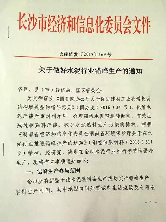 據(jù)了解長沙市本次發(fā)布的錯峰生產(chǎn)通知是依據(jù)2016年12月17日通過的《湖南省水泥行業(yè)2017年錯峰生產(chǎn)總體方案》執(zhí)行的。