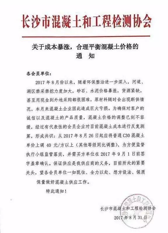 隨著8月長(zhǎng)沙市場(chǎng)砂石廠幾近關(guān)停,或再一次推送混凝土價(jià)格沖破400元/方。然而,即使價(jià)格被頂?shù)?00元/方,攪拌站商家也高興不起來,因?yàn)?,依舊買!不!到!砂石!九月份石子的價(jià)格已經(jīng)抬到了120元/噸!