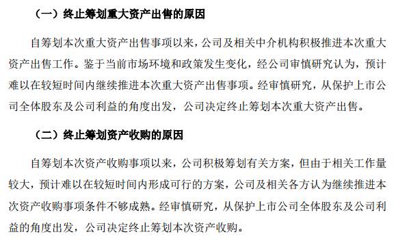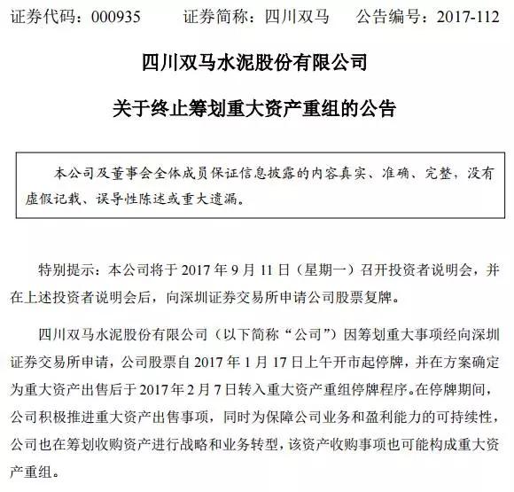 此次的資產(chǎn)收購也同水泥資產(chǎn)出售終止一同終止。