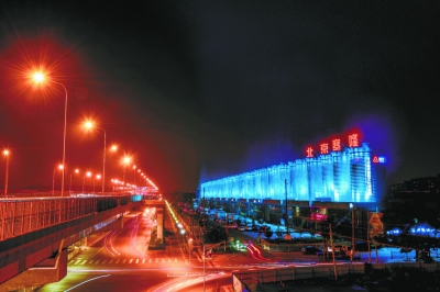 廣渠路和雙橋東路交界處,46座12米高灰色圓柱形水泥筒倉(cāng)靜靜矗立。這片亞洲最大的水泥罐體群屬于塞隆文創(chuàng)園。“我們利用激光投影技術(shù),在夜間會(huì)把全部的水泥筒倉(cāng)打亮。”園區(qū)相關(guān)負(fù)責(zé)人王靜給記者展示了夜景試驗(yàn)時(shí)的照片:齊整、巨大的水泥筒倉(cāng)呈現(xiàn)五彩斑斕的顏色,車(chē)行廣渠路,數(shù)公里開(kāi)外也能看得清清楚楚。今后,如此極具工業(yè)特色的夜景,每天晚上都會(huì)扮靚這條通往北京城市副中心的重要道路。