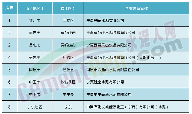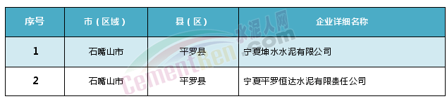 2017年寧夏區(qū)控重點污染源水泥企業(yè)