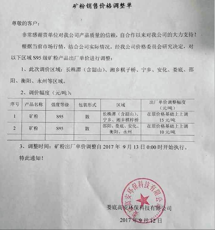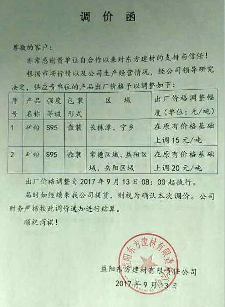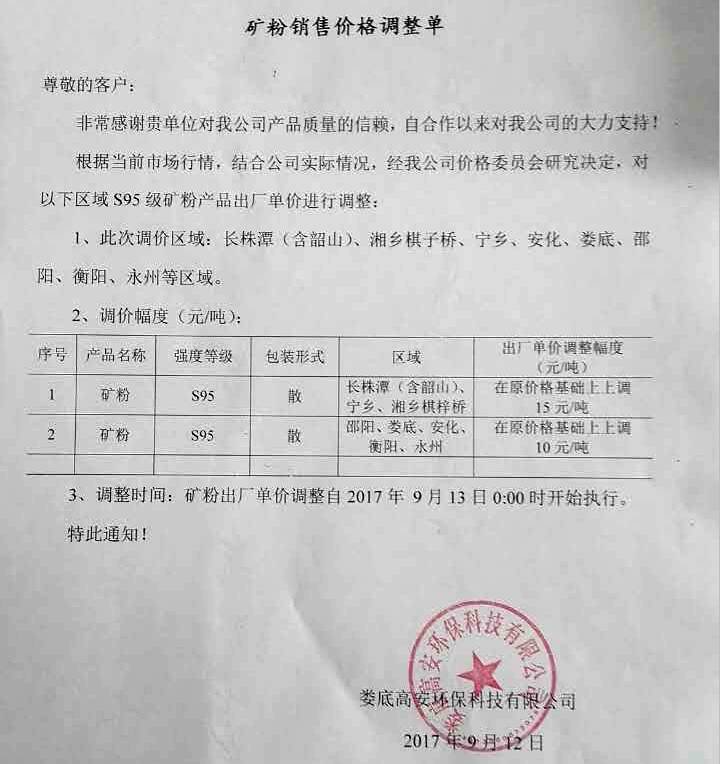 提價后,S95級礦粉的報價在210~230元/噸。