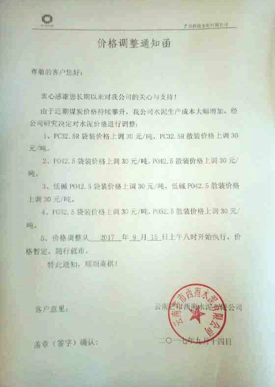 實(shí)現(xiàn)普漲,其中低標(biāo)袋、散裝水泥上漲15元/噸,高標(biāo)袋、散裝上調(diào)幅度30元/噸;