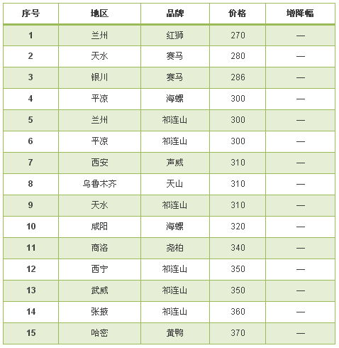 西北地區(qū),區(qū)域主導(dǎo)企業(yè)祁連山水泥,堯柏水泥等為維持市場穩(wěn)定做出了表率。本周西北地區(qū)價(jià)格方面暫無大的調(diào)整。