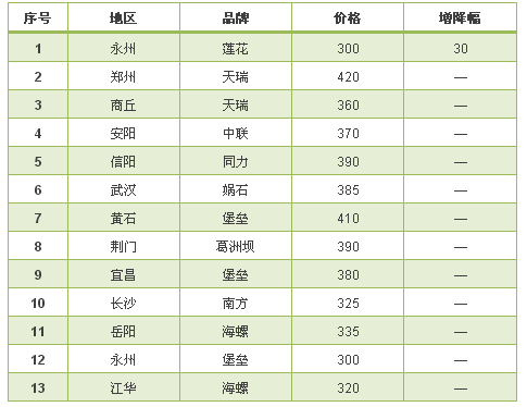 華中地區(qū)自14日各品種水泥上調(diào)30元/噸后僅永州蓮花水泥在17日發(fā)布提價(jià)通知稱各品種水泥提價(jià)30元/噸。提價(jià)后與區(qū)域內(nèi)其他企業(yè)價(jià)格基本持平。