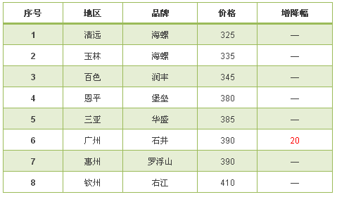 華南地區(qū),本周價(jià)格趨穩(wěn),僅廣州地區(qū)有小幅上漲。華南區(qū)域內(nèi)臺(tái)泥國際英德廠房臨時(shí)停產(chǎn)應(yīng)在短期內(nèi)對華潤水泥有利。