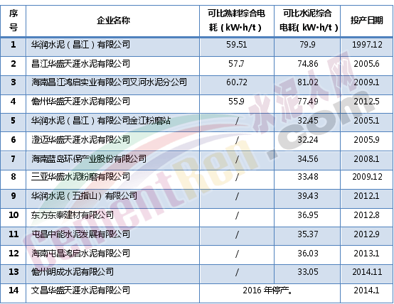 全省被列入核查的水泥企業(yè)14家,其中文昌華盛天涯水泥有限公司因2016年度停產(chǎn)未開展核查外,其他13家企業(yè)均配合完成了核查任務(wù)。2016年,全省13家水泥企業(yè)共生產(chǎn)熟料1510萬噸、水泥2182萬噸,用電量合計(jì)16.8億千萬時(shí)。