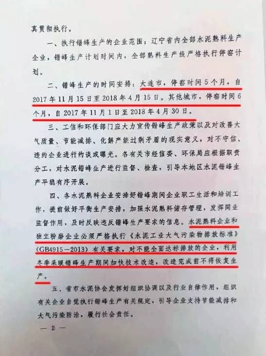 四、各水泥熟料企業(yè)安排好錯峰期間企業(yè)職工生活和培訓工作,提前做好平衡生產安排,加強水泥熟料儲存管理,發(fā)揮同業(yè)監(jiān)督作用,及時反映違反錯峰生產要求的信息。水泥熟料企業(yè)和獨立粉磨企業(yè)必須嚴格執(zhí)行《水泥工業(yè)大氣污染物排放標準》(GB4915-2013)有關要求,對不能全面達標排放的企業(yè),利用冬季采暖錯峰生產期間加快技術改造,改造完成前不得恢復生產。