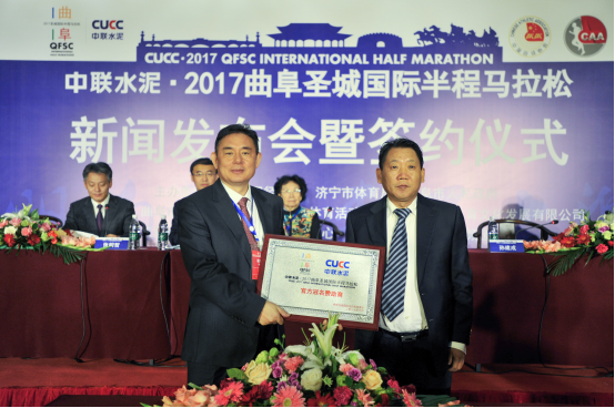 中聯(lián)水泥2017曲阜圣城國際半程馬拉松由中國田徑協(xié)會、濟寧市體育局、曲阜市人民政府共同主辦,曲阜市教育和體育局、曲阜市體育活動中心、北京初美體育文化發(fā)展有限公司承辦。
