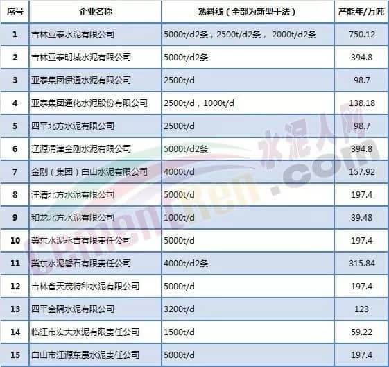 吉林省水泥熟料企業(yè)名單