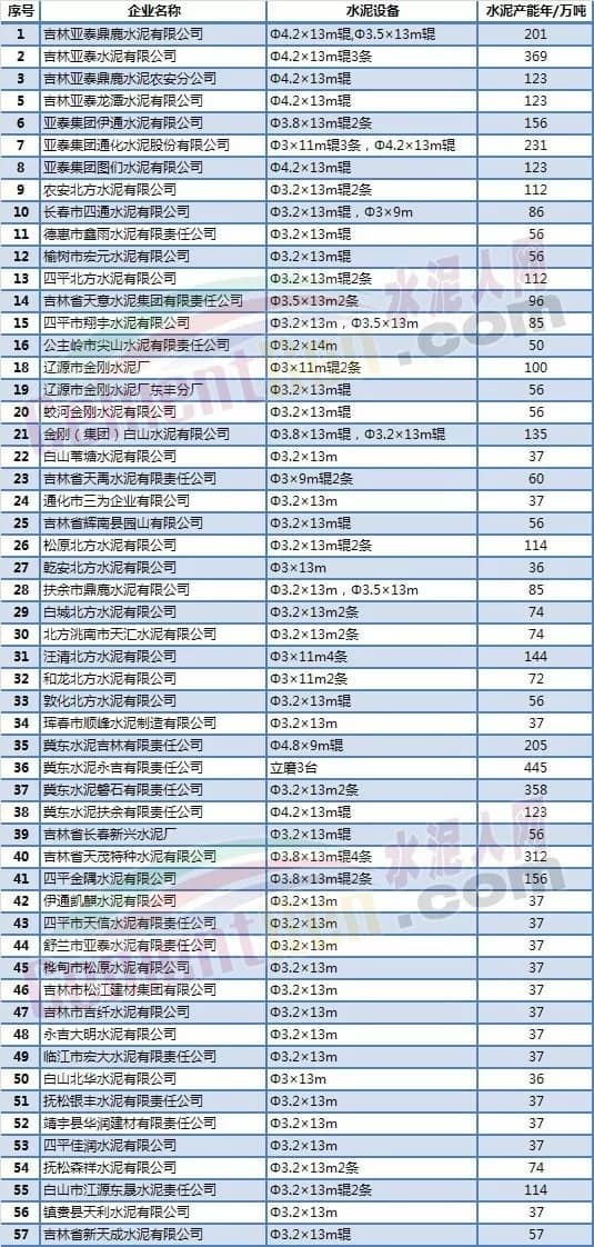 吉林省水泥粉磨企業(yè)名單
