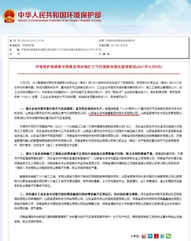 環(huán)境保護(hù)部11月6日通報京津冀及周邊地區(qū)大氣污染防治強(qiáng)化督查情況中通報了山西省長治市南耀集團(tuán)科保水泥有限公司在所屬區(qū)域啟動重污染天氣應(yīng)急預(yù)案后仍未停產(chǎn)。