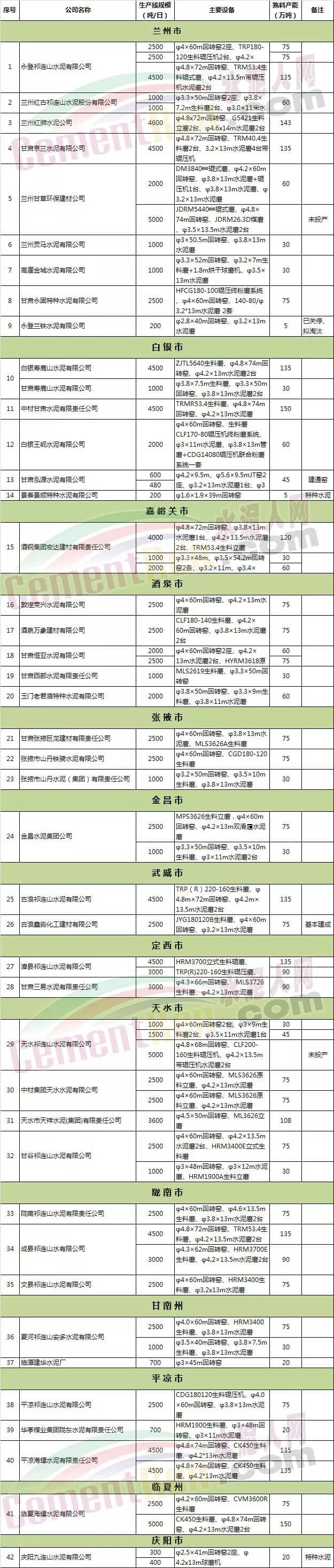甘肅省水泥熟料生產(chǎn)線產(chǎn)能現(xiàn)狀清單