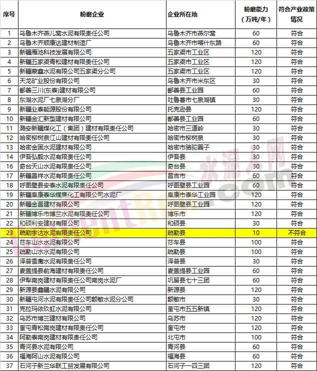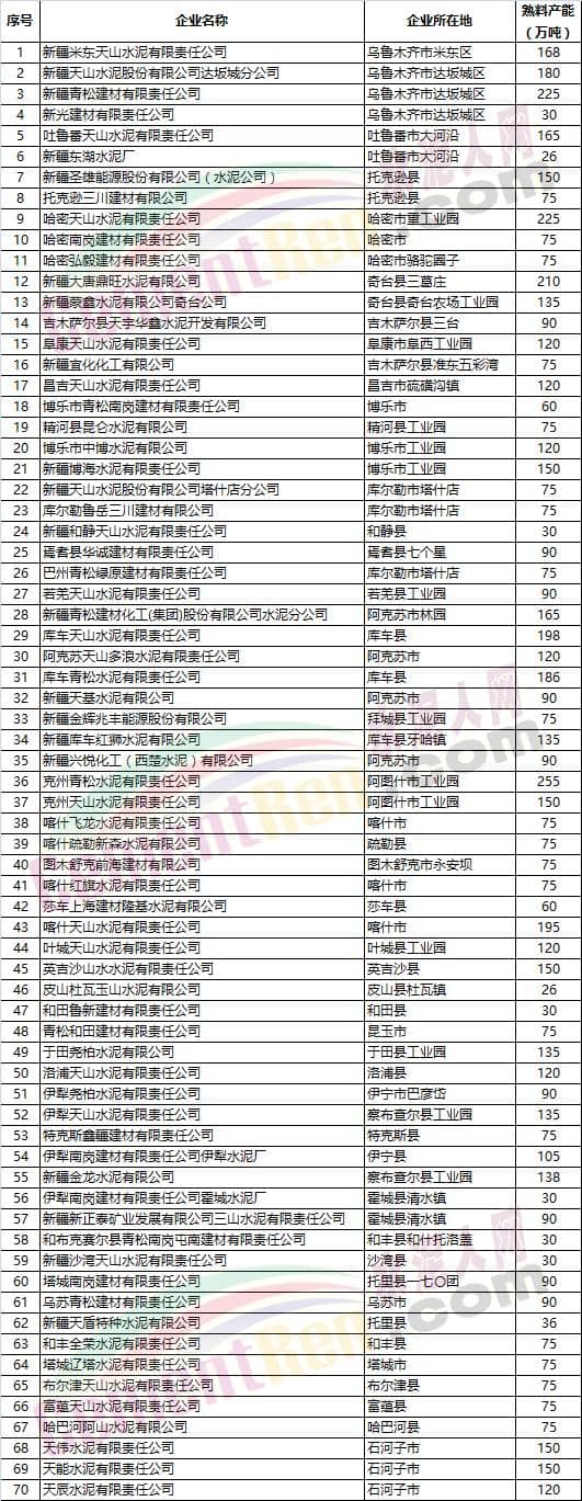 烏魯木齊、昌吉、吐魯番、石河子區(qū)域(含塔城地區(qū)沙灣天山水泥有限公司和烏蘇青松水泥有限公司)傳統水泥生產企業(yè)與電石渣水泥企業(yè)實行“錯峰置換”。