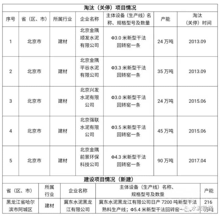 以上5條水泥回轉(zhuǎn)窯生產(chǎn)線熟料產(chǎn)能指標(biāo)合計(jì)為7267噸/天,折合218萬(wàn)噸/年。經(jīng)商請(qǐng)北京市人民政府同意北京金隅股份有限公司關(guān)停水泥熟料產(chǎn)能指標(biāo)轉(zhuǎn)出,并將《冀東水泥黑龍江有限公司日產(chǎn)7200噸新型干法熟料生產(chǎn)線建設(shè)項(xiàng)目產(chǎn)能置換方案》呈報(bào)黑龍江省人民政府同意,現(xiàn)予以公告。