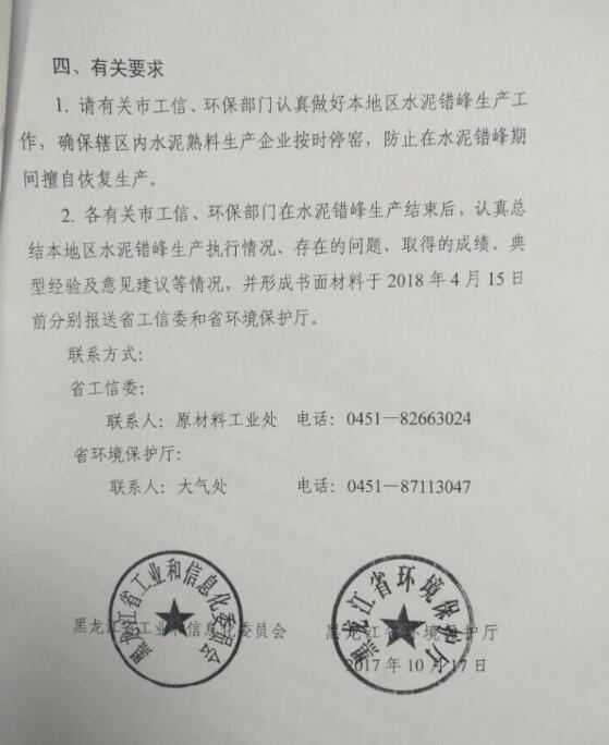 附件:《黑龍江省工業(yè)和信息化委員會黑龍江省環(huán)境保護(hù)廳關(guān)于黑龍江省2017-2018年度水泥錯峰生產(chǎn)工作的通知》