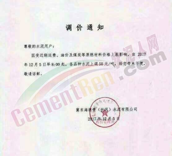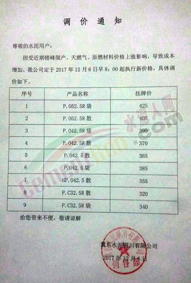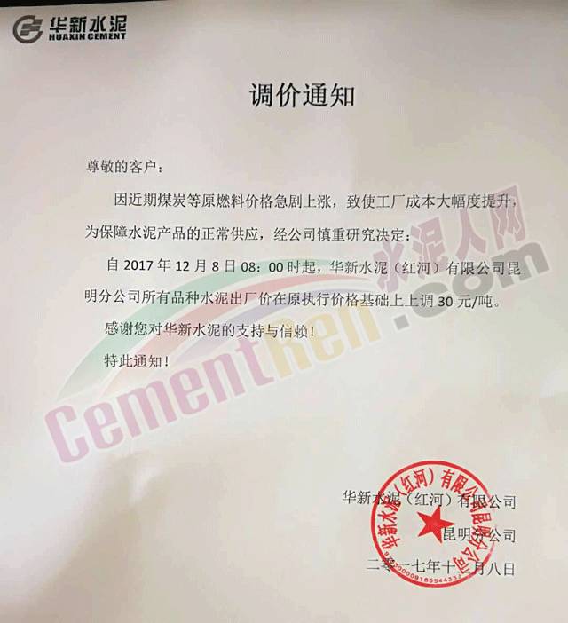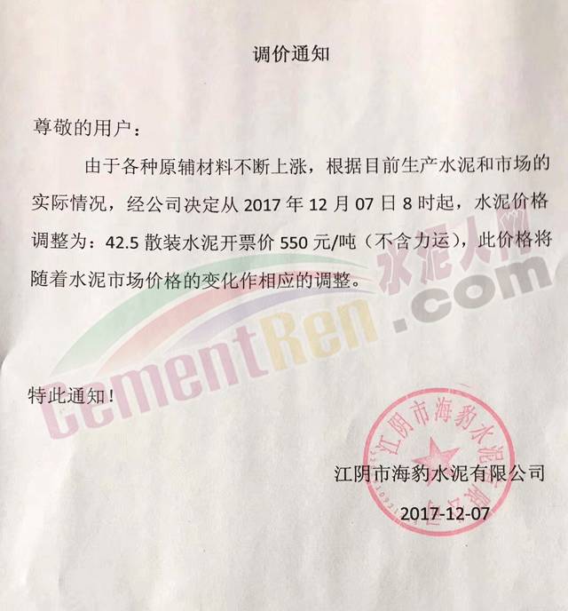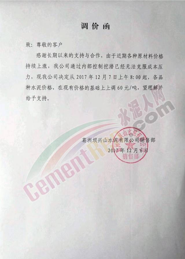 【水泥人網(wǎng)】近期多家企業(yè)發(fā)布提價(jià)通知,今日也不例外,云南、陜西、山西、江蘇、湖北等多區(qū)域企業(yè)發(fā)布提價(jià)通知,通知函如下: