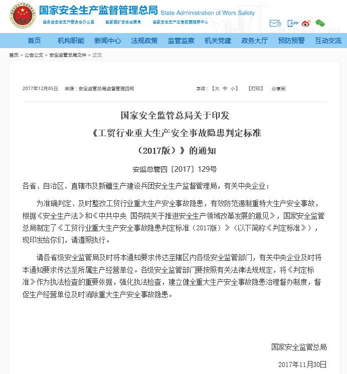 工貿(mào)行業(yè)重大生產(chǎn)安全事故隱患判定標(biāo)準(zhǔn)