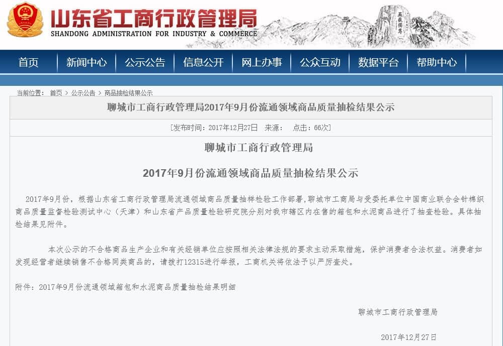 結(jié)果顯示,2017年9月份,根據(jù)山東省工商行政管理局流通領(lǐng)域商品質(zhì)量抽樣檢驗(yàn)工作部署,聊城市工商局與受委托單位中國商業(yè)聯(lián)合會(huì)針棉織商品質(zhì)量監(jiān)督檢驗(yàn)測試中心(天津)和山東省產(chǎn)品質(zhì)量檢驗(yàn)研究院分別對聊城市轄區(qū)內(nèi)在售的水泥商品進(jìn)行了抽查檢驗(yàn)。