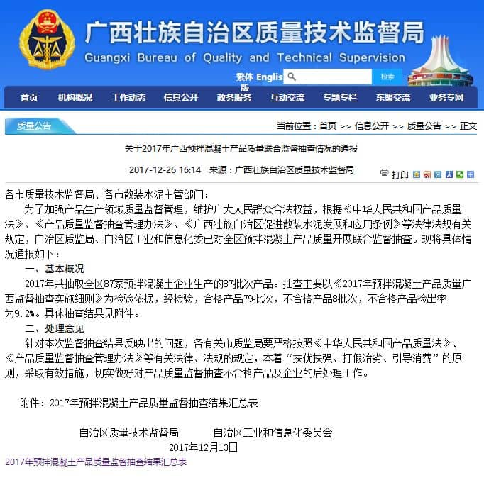 據(jù)水泥人網(wǎng)了解,此前也有部分地區(qū)抽檢出水泥成品的氯離子超標(biāo),其不合格原因與原料,燃料的氯離子的含量不無關(guān)系。而近日廣西壯族自治區(qū)質(zhì)量技術(shù)監(jiān)督局公布的《關(guān)于2017年廣西預(yù)拌混凝土產(chǎn)品質(zhì)量聯(lián)合監(jiān)督抽查情況的通報(bào))顯示2017年共抽取全區(qū)87家預(yù)拌混凝土企業(yè)生產(chǎn)的87批次產(chǎn)品。合格產(chǎn)品79批次,不合格產(chǎn)品8批次,不合格產(chǎn)品檢出率為9.2%,不合格項(xiàng)目為抗壓強(qiáng)度。