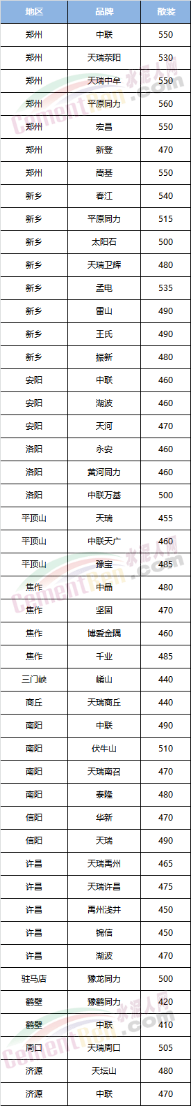 河南區(qū)域PO42.5散裝水泥參考報(bào)價(jià)