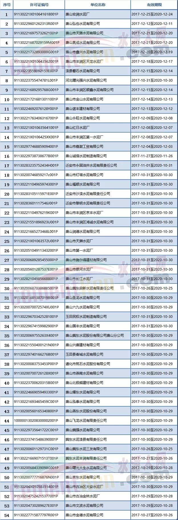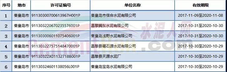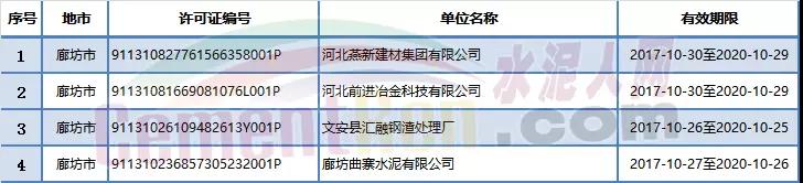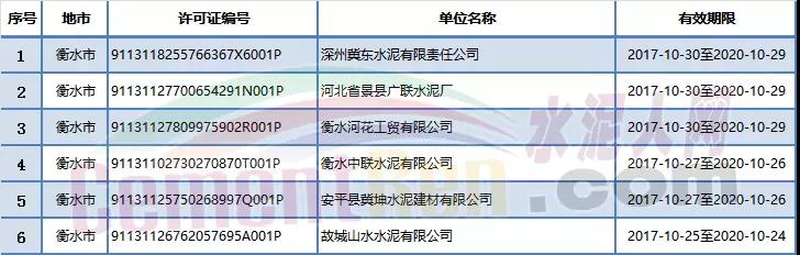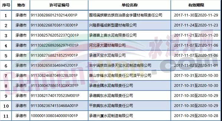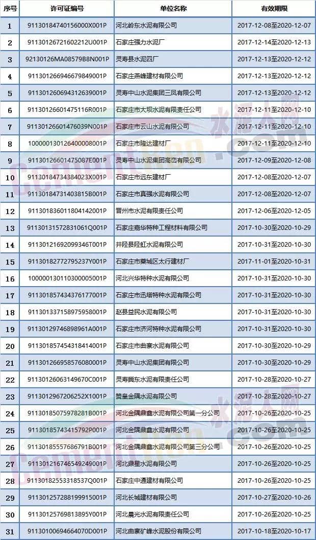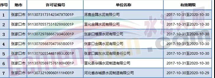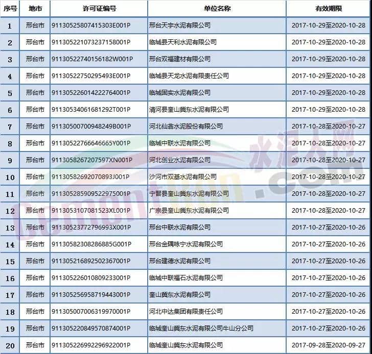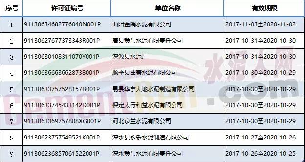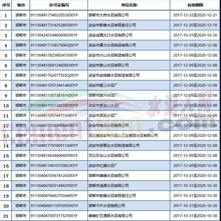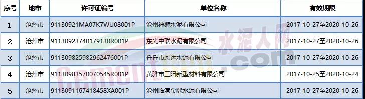 附:各市水泥制造行業(yè)已取得排污許可證企業(yè)名單