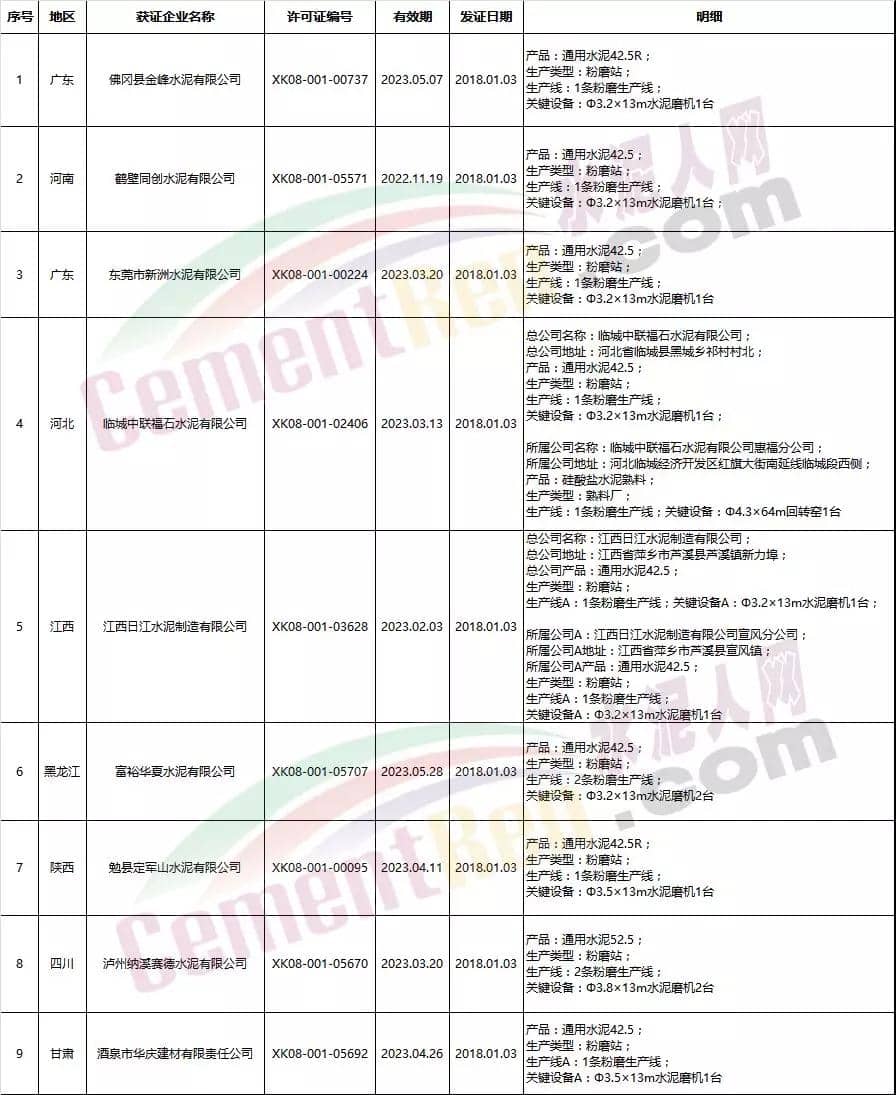 二、十一家企業(yè)涉及項目變更,一家企業(yè)更換帶有熟料單元的生產(chǎn)許可證書