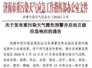 除京津冀晉魯豫之外,從1月12日起至17日,山東13個市將出現(xiàn)一輪中至重度污染。目前,濟南市已發(fā)布重污染天氣橙色預(yù)警。