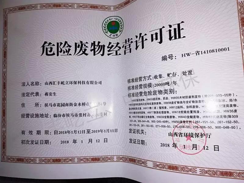 山西匯豐屹立環(huán)??萍加邢薰疽劳泻铖R市匯豐建材有限責任公司2500t/d水泥窯,開展了水泥窯協(xié)同處置2萬噸/年工業(yè)危險廢棄物項目,于2018年1月12日取得了《危險廢物經(jīng)營許可證》,核準經(jīng)營方式為:收集、儲存和處置,可以處置19大類的危險廢物,年處置量為2萬噸。匯豐集團對水泥窯協(xié)同處置危廢項目高度重視,調(diào)研了多家水泥窯協(xié)同處置危廢企業(yè),也接洽了幾家危廢處置領(lǐng)域的上市公司,經(jīng)過多方考察調(diào)研和商討磋商,匯豐屹立最終選擇了中丹環(huán)保作為合作伙伴。