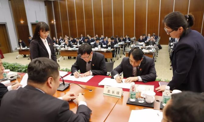 會上,公司副總經(jīng)理劉素敏宣讀了部分企業(yè)由金隅冀東水泥直接管理的文件精神和2018年績效管理目標(biāo)責(zé)任書編制說明,公司財(cái)務(wù)總監(jiān)任前進(jìn)宣讀了總部部門2017年度考核兌現(xiàn)意見。公司黨委書記、董事長姜長祿與23家企業(yè)及15個總部部門簽訂2018年度績效管理目標(biāo)責(zé)任書。朱長君、王川等6名同志作為企業(yè)及總部部門負(fù)責(zé)人代表先后表態(tài)發(fā)言。