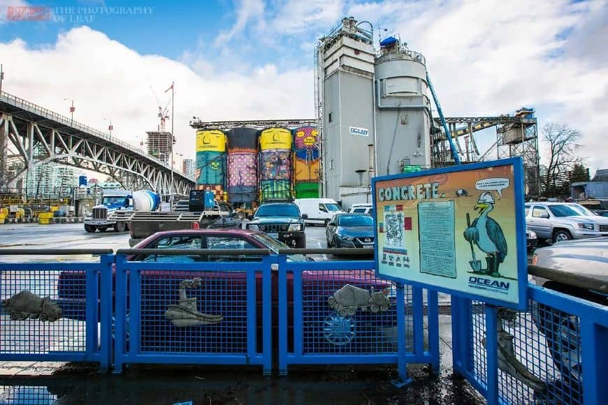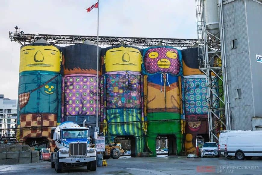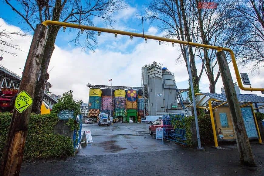 廠區(qū)內(nèi)最吸引眼球的要數(shù)這六座高大的混凝土筒倉(cāng)。原本單調(diào)無(wú)味的灰色建筑,在兩位著名的巴西雙胞胎藝術(shù)家的改造下,變得如此的充滿活力,已成為了格蘭維爾島標(biāo)志性建筑之一。據(jù)說(shuō)當(dāng)時(shí)花了約80萬(wàn)人民幣制作而成。