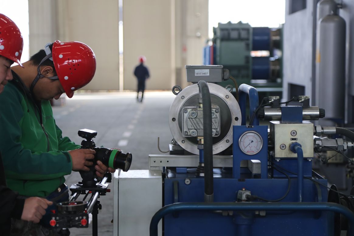 這臺我國擁有自主知識產(chǎn)權的輥壓機,直徑達2米,整機重量達438噸,各項經(jīng)濟技術指標達到了世界先進水平。像這樣超大規(guī)格的輥壓機解決了大型水泥生產(chǎn)線高效粉磨的難題,具有粉碎效率高、生產(chǎn)能力大、工藝系統(tǒng)簡捷、維護工作量小等特點,是目前國際公認粉碎效率最高的設備。輥壓機不僅應用在水泥行業(yè),也廣泛應用在冶金、礦山、有色金屬選礦及鋼渣深加工等領域。2017年1月,成功入選了國家工信部公布的第一批制造業(yè)單項冠軍示范企業(yè)名單。